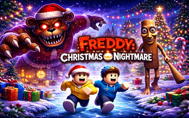 Navigate a chilling festive landscape where holiday cheer conceals lurking terror. Escape Freddy’s relentless pursuit amidst twinkling lights and towering trees, while the sinister Tung Tung Sahur haunts your every step. Survive the nightmare and make it out of this deceptive winter wonderland.