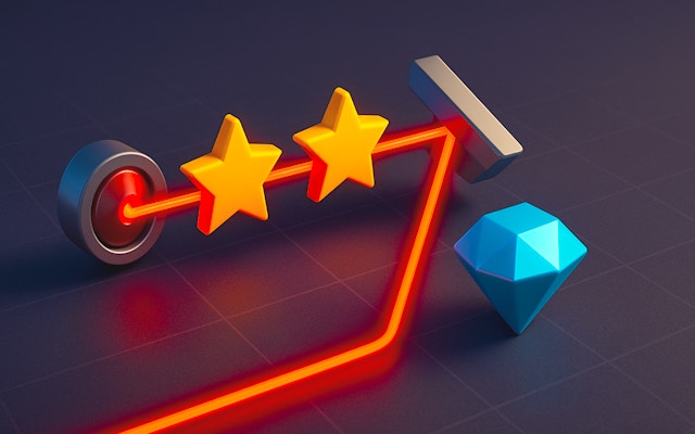Guide laser beams to diamonds in Rayzzle's elegant grid. Use mirrors and splitters to solve intricate puzzles, combining logic with spatial reasoning. Tackle 60 levels that test your precision and creativity, earning stars for optimal solutions. Dive into a captivating world of brain-teasing challenges and mesmerizing visuals.