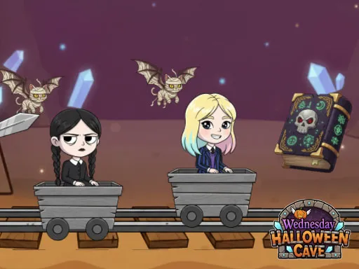As meninas góticas precisam escapar da mina. As meninas que estudam na escola de bruxos entram em uma caverna muito perigosa em busca do livro mágico que elas têm procurado. Dentro da caverna, elas encontram um zumbi que elas nunca viram antes. Junto com seus amigos, ajude as meninas a conseguir o livro mágico e certifique-se de que elas o recuperem com segurança. Cuidado - há aranhas perigosas e um zumbi gigante na caverna. Fuja do zumbi gigante e não deixe que ele te pegue!